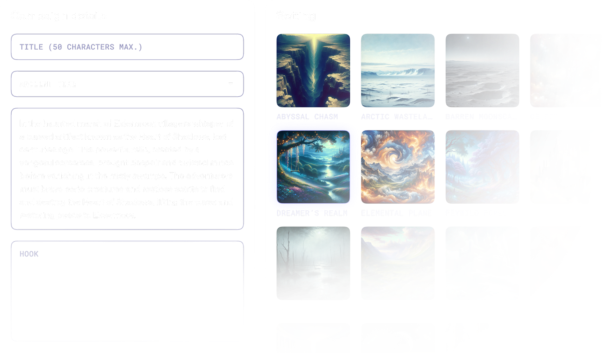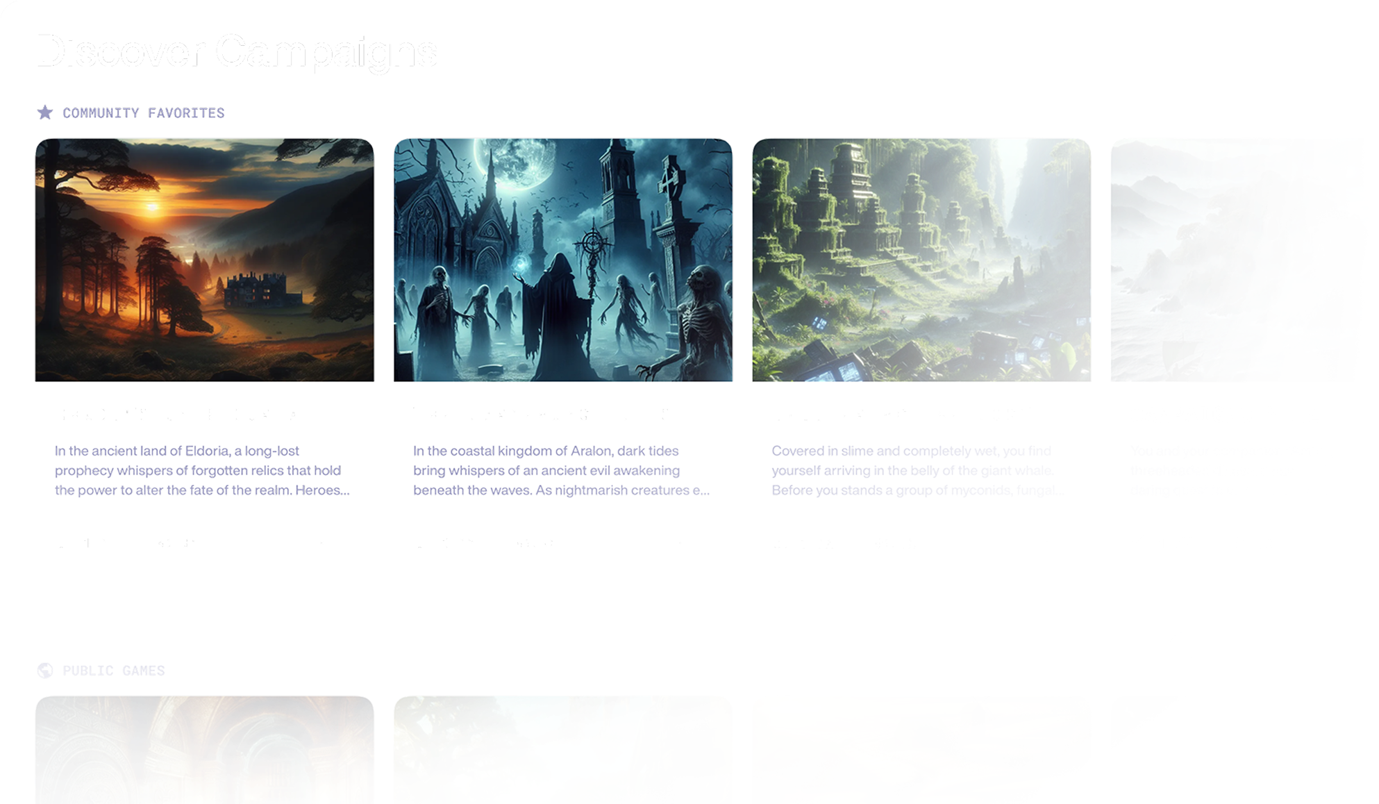 Step into a classic RPG experience inspired by Dungeons & Dragons. Create your character and lead them into immersive campaigns where every choice shapes your journey.